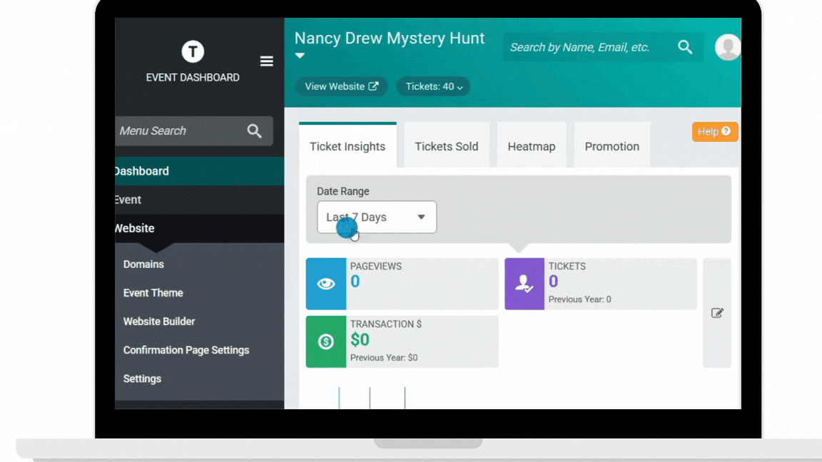 - Event Date: You can add a Custom Event Date to display under the price or hide the event dates from displaying on the ticket tiles. The Default Event Date will only show if you enable start and end dates for the ticket group, under Tickets >> Ticket Groups, by clicking Edit Ticket Group in the Actions dropdown for that Ticket Group.